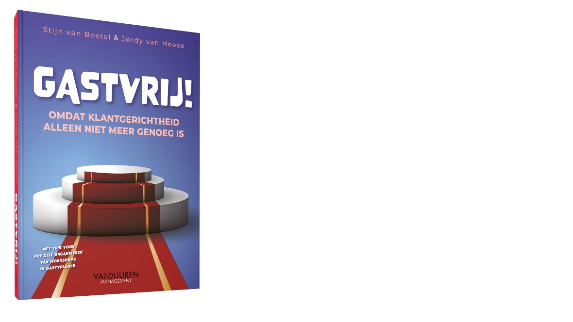 Tegelijkertijd zagen Stijn en Jordy ook veel klantfrustraties: onpersoonlijke aanmeldzuilen, afstandelijke behandelingen en een doolhof van medewerkers die geen verantwoordelijkheid namen voor een probleem, maar wél als eerste een enquête mailden na een aankoop. Dit was het startschot om praktijkvoorbeelden te bundelen als antwoord op deze frustraties. Zo werd het nieuwe boek Gastvrij! geschreven en uitgebracht in samenwerking met uitgeverij Van Duuren.