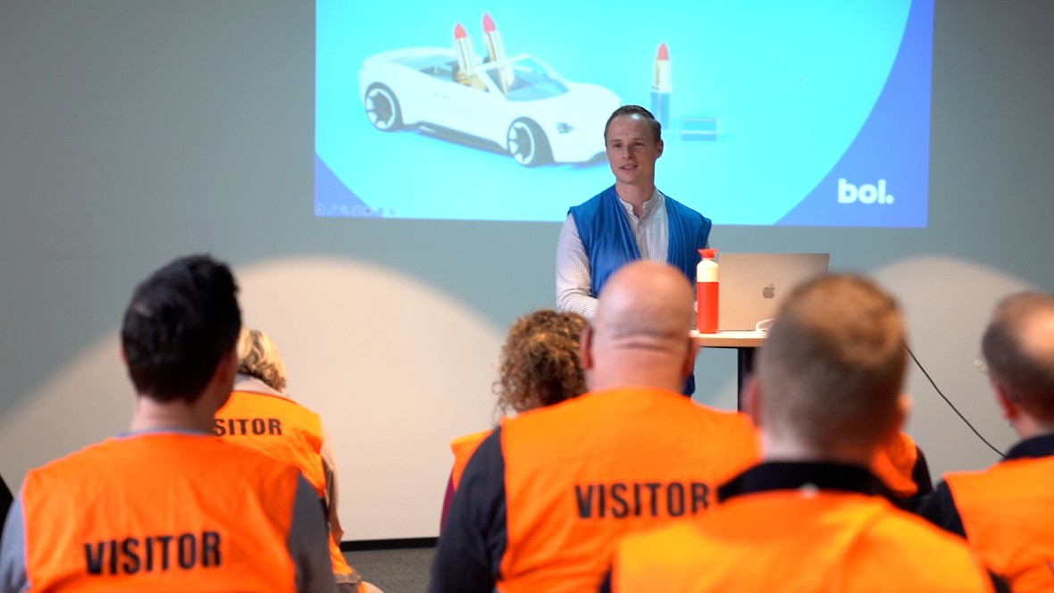 Het Data & AI-team sluit af met een inkijk in hun datagedreven aanpak. Met 137 PowerBI-dashboards en miljoenen geautomatiseerde microtaken per jaar is de afdeling stevig verankerd in data-analyse en process mining. De volgende stap is ‘agentic AI’: agents die processtappen uitvoeren onder toezicht van medewerkers. Niet om mensen te vervangen, maar om hen te versterken. De rode draad van de ochtend: innovatie werkt pas als medewerkers begrijpen, vertrouwen én meebouwen. Na een goedverzorgde lunch vertrekt het gezelschap opnieuw per bus naar Waalwijk, ditmaal voor een kijkje achter de schermen bij Bol.
