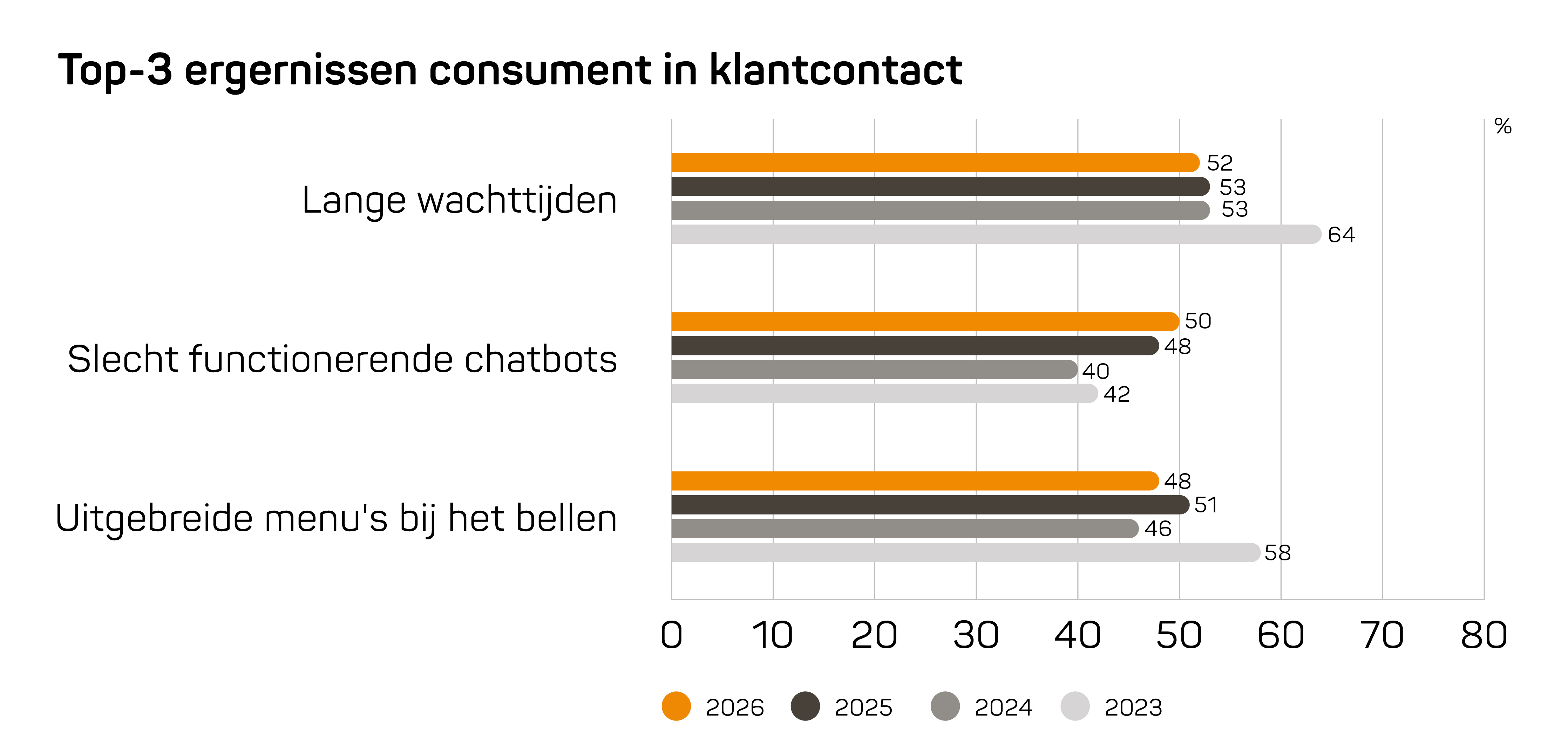 Lange wachttijden vormen volgens het onderzoek de grootste frustratie: 52% van de respondenten noemt dit als belangrijkste irritatie, gevolgd door chatbots (50%). Elise van Holsteijn van Markteffect zegt hierover: ‘Onder Nederlanders is lang wachten op hulp vaak de grootste bron van ergernis.’ Verwijmeren voegt toe dat veel organisaties AI toevoegen zonder processen fundamenteel te herzien, waardoor toepassingen beperkt blijven.