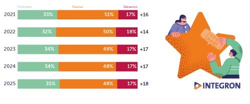 De klantervaring binnen Nederlandse B2B-organisaties blijft stabiel, ondanks toenemende druk door economische onzekerheid en veranderende klantverwachtingen. Dat blijkt uit benchmarkonderzoek van Integron onder ruim 200 organisaties. De Net Promoter Score (NPS) stijgt licht van +17 naar +18, een ontwikkeling die volgens de onderzoekers juist in deze context betekenisvol is.